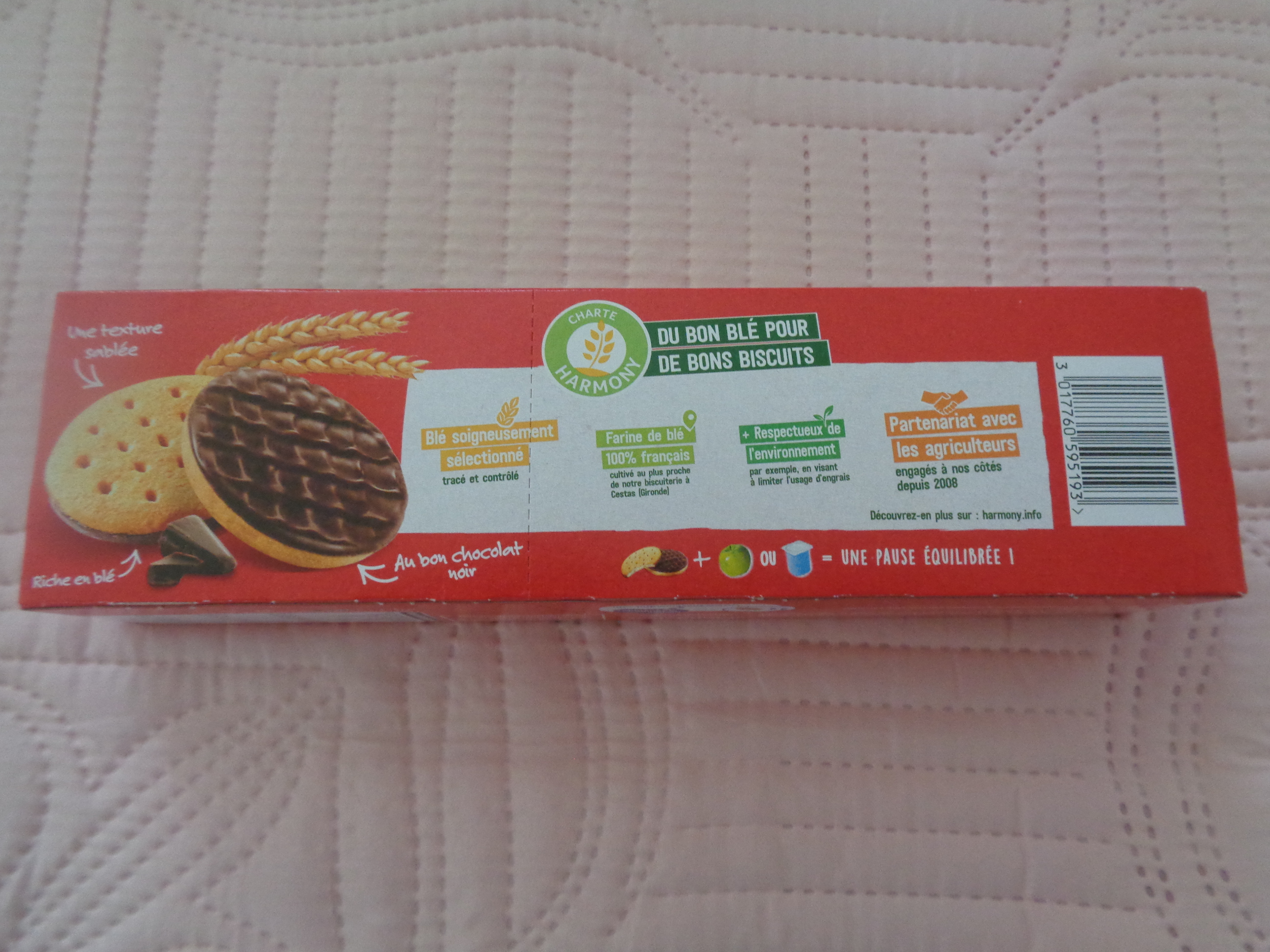 Je change une nouvelle fois de marque en vous parlant de ce produit que vous connaissez peut-être. Si je m’en tiens uniquement à la marque et vous dis qu’elle est plutôt orientée vers les confitures, à quelle marque est-ce que je fais allusion ? Evidemment, à la marque Bonne Maman qui a lancé ses premiers biscuits en 1997, toujours dans une optique d’ingrédients sains et frais. Le petit paquet blanc renferme 14 sablés au chocolat qui se mangent toujours avec la même gourmandise. Les biscuits ou gâteaux au sens large sont facilement repérables dans les rayons puisque les paquets ont une teneur blanche. Le biscuit ou le gâteau en question y est représenté très clairement.
